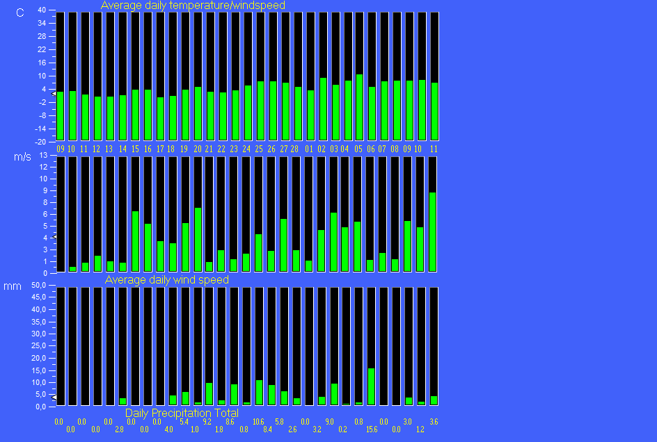 Maximum windspeed = 12.4 m/s from 293°(WNW) on day 03 at time 04:46